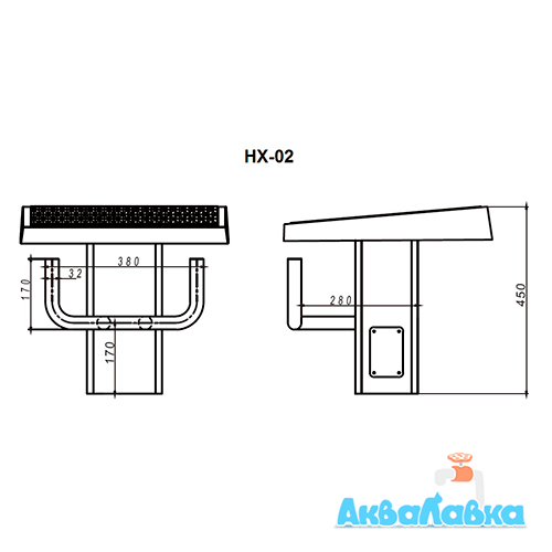 - Основание и поручень изготовлены из нержавеющей стали AISI 304.